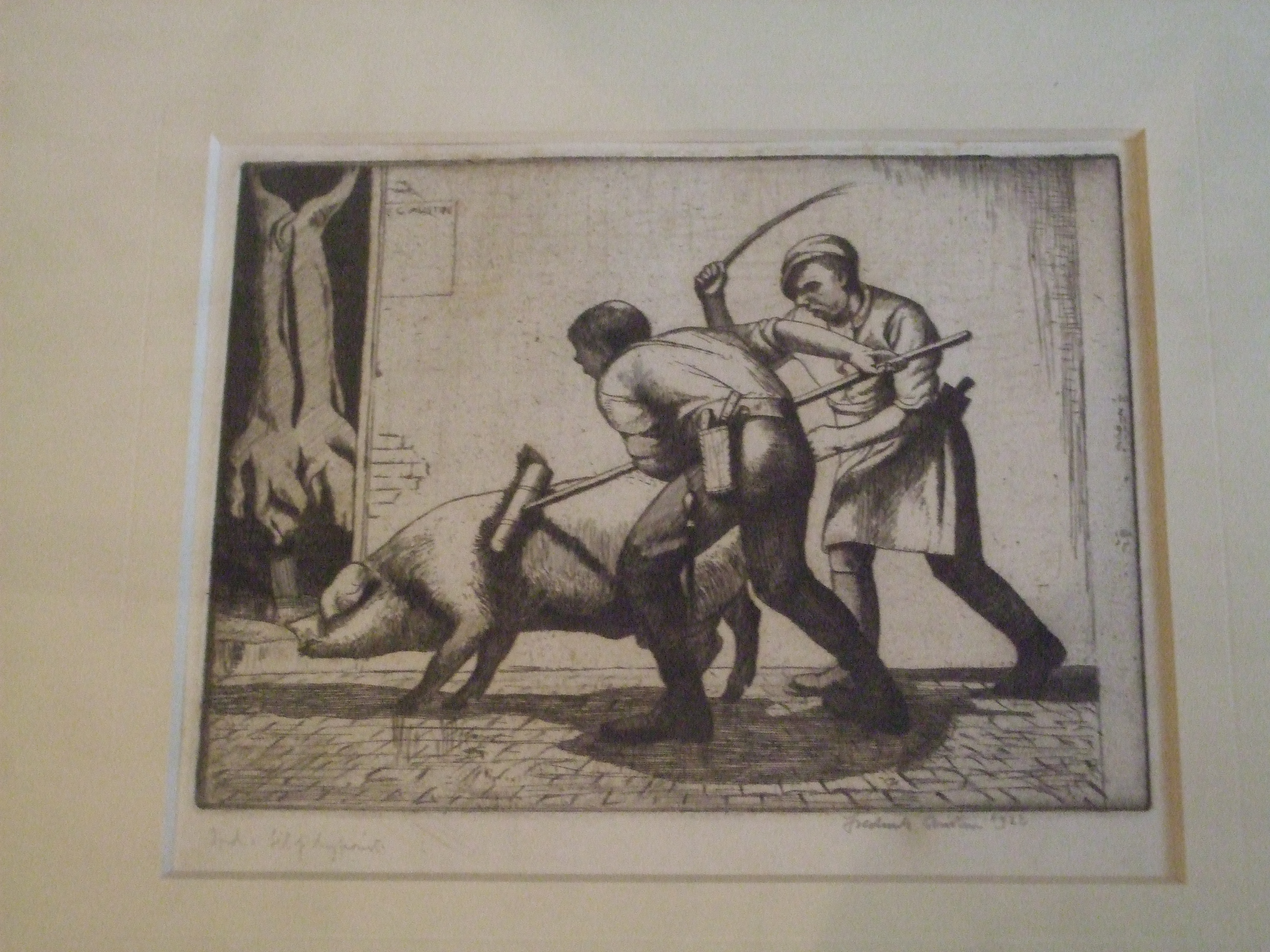 24 May 2015 Frederick Austin by Michael Vicary | posted in: British Prints From 1880 | 0 The Reluctant Pig Etching with drypoint Signed and dated 1928 Image 16cms by 20cms Oak frame £195 Share this:Click to share on Twitter (Opens in new window)Share on Facebook (Opens in new window)Click to share on Google+ (Opens in new window) Related